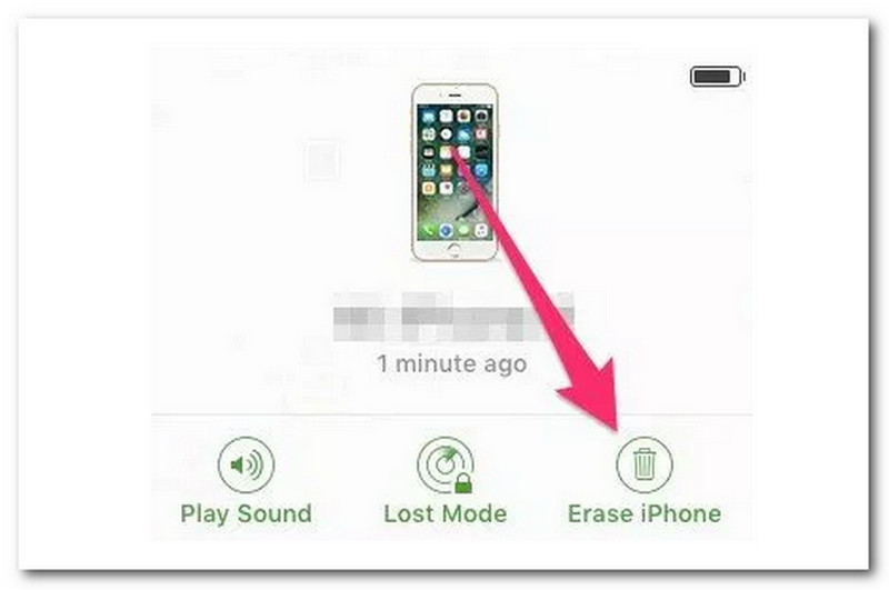 ستمكنك الخطوة الأخيرة من رؤية قائمة الأجهزة التي تريد إعادة تعيينها. اضغط على الجهاز المحدد وانقر فوق محو اي فون الخيار في علامة تبويب منبثقة. سيمكنك هذا الإجراء من إزالة جميع رموز المرور والبيانات الموجودة على جهازك.