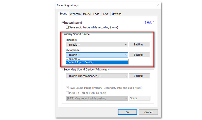تابع بتمكين جهاز الصوت الثانوي. ثم انقر فوق زر موافق (OK).