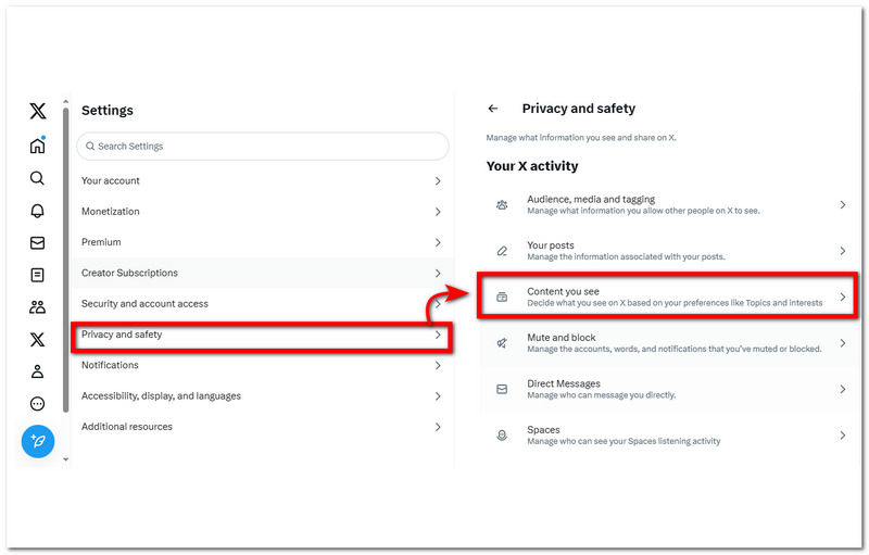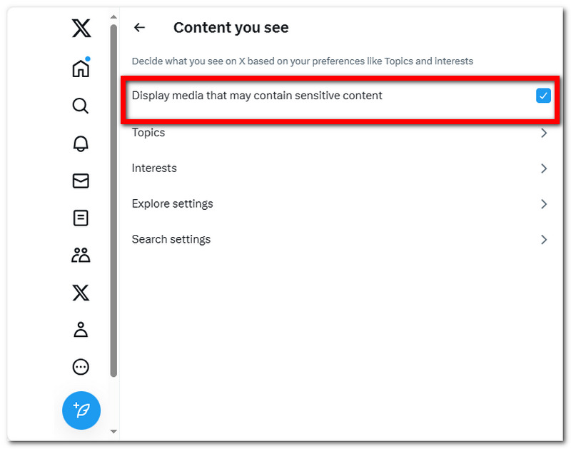 Twitter عبارة عن منصة للتواصل الاجتماعي معروفة بالأخبار العاجلة والتحديثات اللحظية والمحادثات المتنوعة. ومع ذلك، ليست كل المعلومات متاحة بسهولة للجميع. للحصول على تجربة آمنة ومتحضرة عبر الإنترنت، يجب عليك اتباع التعليمات للوصول إلى المحتوى الحساس، مثل المنشورات والوسائط. يتضمن ذلك إدراك المحتوى الذي تشاهده واحترام الآخرين. سنوضح لك في هذه المقالة كيفية الوصول إلى المحتوى المقيد على تويتر دون كسر أي قواعد كيفية تغيير المحتوى الحساس على تويتر من خلال إظهار خطوات حول كيفية القيام بذلك. قراءة هذه المقالة لا تعلمك كيفية رؤية المحتوى الحساس فحسب، بل تعرف أيضًا سبب عدم توفر المعلومات من جانبك. لا تفوت أبدًا الأخبار المثيرة للاهتمام وتمتع بإمكانية الوصول إلى الستار المحدود لتويتر اليوم!