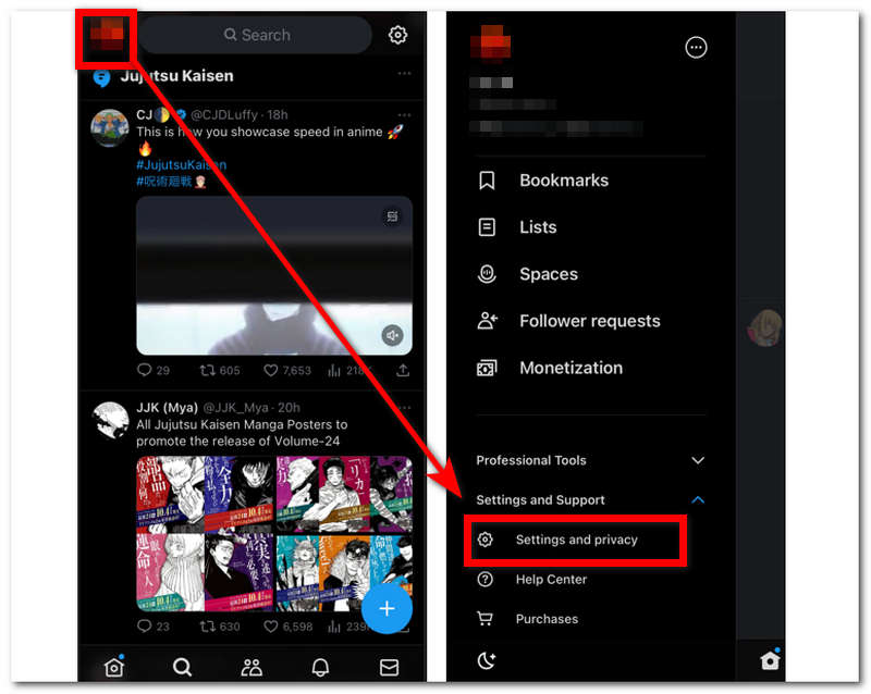 اذهب إلى إعدادت الحساب عن طريق النقر الخاص بك رمز الملف الشخصي في الشاشة العلوية اليسرى. ثم تابع الإعدادات والخصوصية.