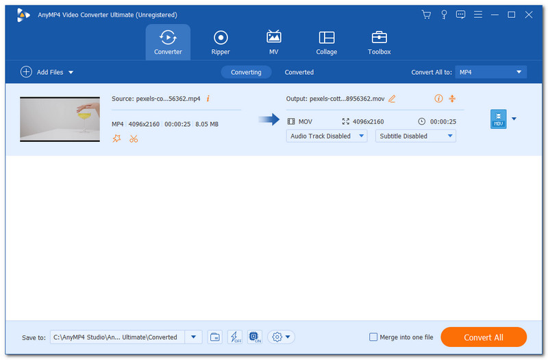 AnyMP4 Video Converter Ultimate is the most outstanding media converter nowadays because of its professional tools for switching and converting different files. Through the use of this converter, you can easily convert an iMovie file format to MP4 videos. In addition, this converter is currently taking the number one spot for the most outstanding media converter in the market. That fact was also intensifying because of the fantastic GPU technology that offers a very smooth and excellent conversion speed for all of us users of it. Therefore, converting a super high-quality output is possible here. Overall, there is no doubt why it is one of the best.