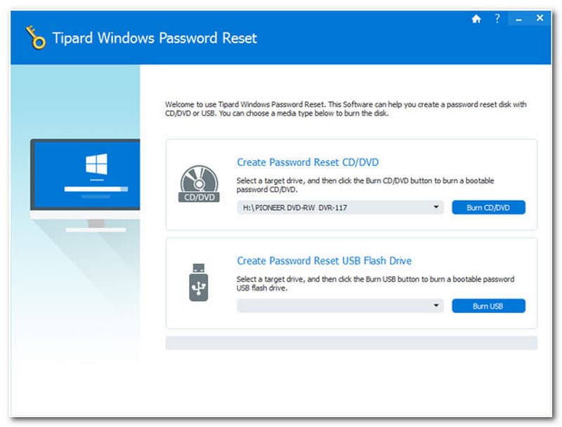 Tipard Windows Password Reset is a great tool to start this review because this tool is one of the leading among the other tools below. It belongs to the most fantastic bypass tool for Windows passwords for three many reasons. It is the ability to give us the most comprehensive and practical features. It is possible to bypass passwords on Windows 11, 10, 8, 7, XP and more. In addition, the features it possesses are straightforward to use, and even novice users will never experience complications in using it. Also, Tipard Windows Password Reset is safe to use with cost-efficient characteristics. These three factors can help us bypass passwords on Windows easily. No wonder why many users are fond of Tipard Windows Password Reset.