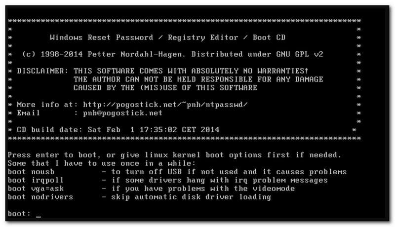 Chntpw possesses unique features and characteristics among the best recovery tools in this post. This tool is an offline NT password and Registry Editor. Also, it can freely work from a USB flash drive or CD. Moreover, the device is excellent for resetting and changing your password administrator in Windows.
