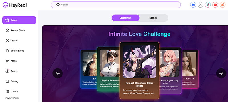 HeyReal is a relatively new player in the character AI space, offering a free platform that allows users to interact with virtual characters conversationally. The key appeal of HeyReal is its focus on providing a more personalized and realistic AI interaction. Unlike Character AI, it heavily emphasizes emotional connection and relationship-building through the chat. However, the character library isn't as extensive so that users might have fewer options.