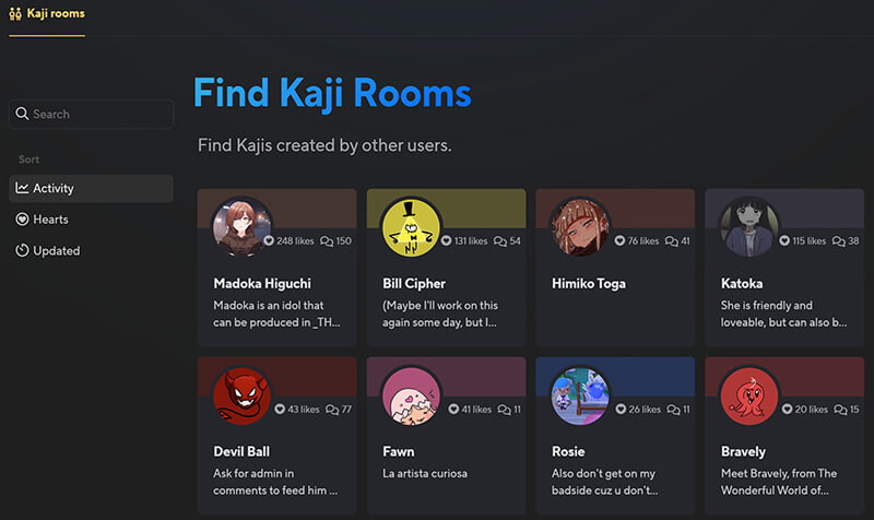 Key Difference: Kajiwoto offers deep customization options for those willing to pay. It’s a great choice if you want total control over your character's behavior and appearance and are looking for more unfiltered content.