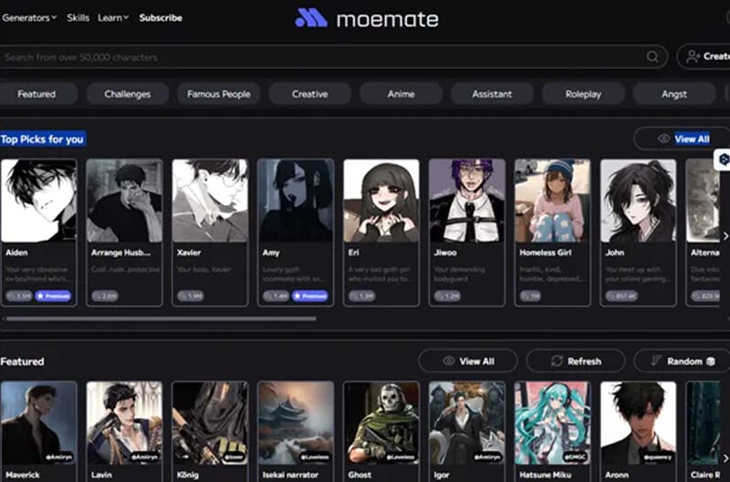 Momeate is a platform that thrives on user-generated characters. The community-driven aspect means a massive variety of characters to interact with, from popular media figures to original creations. Momeate’s model emphasizes user creativity and control, allowing anyone to create their characters and interact with others. However, the character quality can vary, and moderation is a bit of a mixed bag.