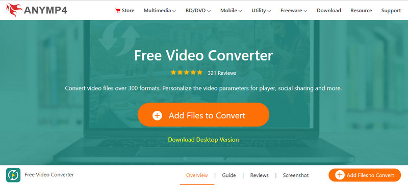 Pokud hledáte online převodník videa z vysokého rozlišení na nízké, důrazně doporučujeme AnyMP4 Free Online Video Converter, který vám umožní převádět vaše videa a filmy do různých rozlišení, jako je Full HD neboli 720p, 1080p a ultra kvalitní HD 4K neboli 2160p. Vězte, že tento bezplatný online převodník vám umožní převádět videa z vysokého na nízké rozlišení a naopak, aniž by došlo ke ztrátě kvality nebo původních efektů. Dobré na tomto softwaru je navíc to, že kromě toho, že je zdarma, je také bezpečný a snadno použitelný. Jelikož jde o online převodník videa, nemusíte jej do svého zařízení stahovat.