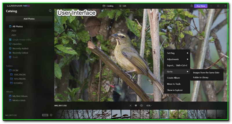 Pokud hledáte jinou alternativu Lightroom, můžete to zkusit Luminární. Stejně jako předchozí software pro úpravu fotografií má Luminar také profesionální uživatelské rozhraní. Kromě toho poskytuje tři různé katalogy, které vám umožní spravovat všechny vaše fotografie.