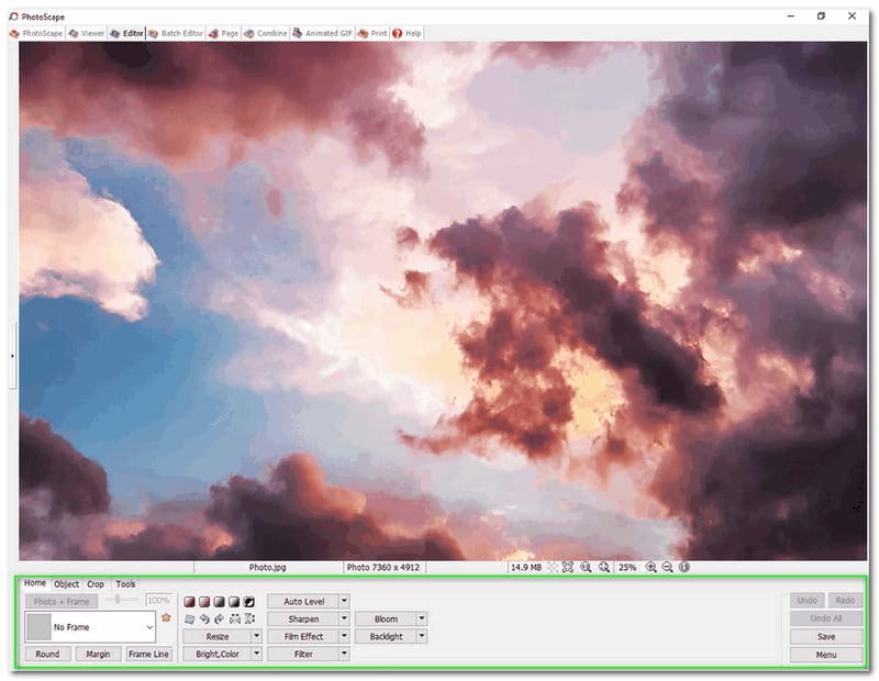Navíc při používání Photoscape můžete použít Editor, Dávkový editor, Kombinovat, Animovaný GIF, Tisk, Rozdělovač, Snímání obrazovky, Výběr barvy, Převodník nezpracovaných souborů, Prohlížeč, a mnoho dalších. Pokud jde o Editor, zažijete úpravu fotografií podle Úprava barev, korekce podsvícení, přidávání textu, kreslení obrázků, a mnoho dalších.