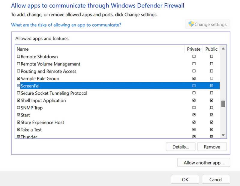 Vælg Tillad en app gennem firewall.