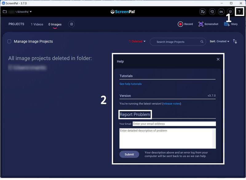 Åbn Screencast-O-Matic-softwaren, og klik på ? ikon i øverste højre hjørne af hovedgrænsefladen.