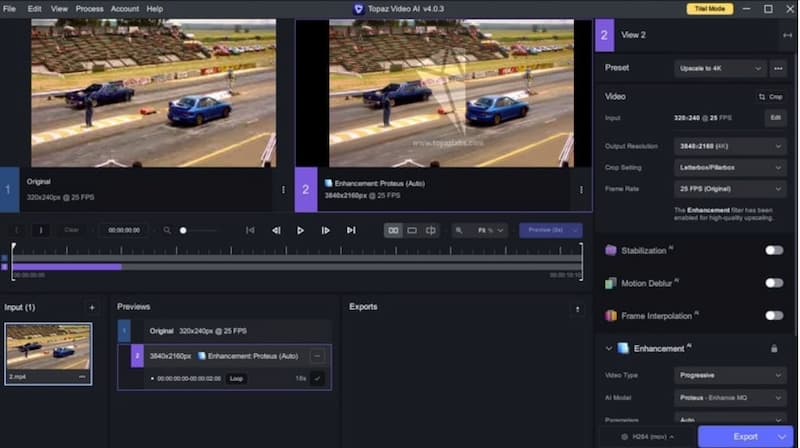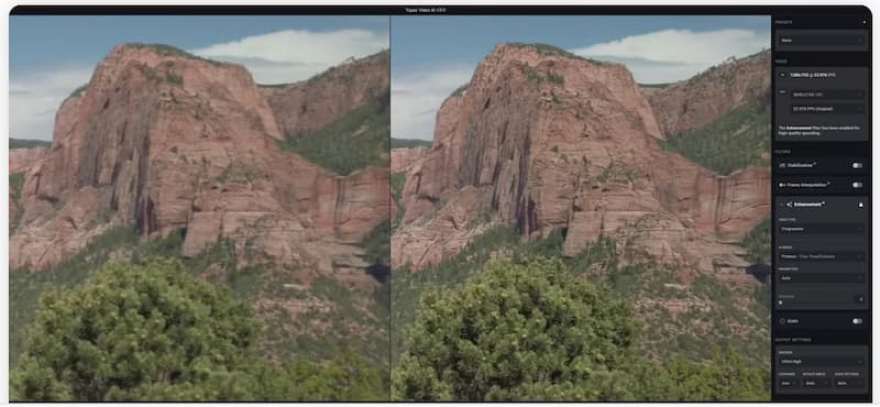 Mejoras de alta calidad: Topaz Video Enhance AI es conocido por sus potentes modelos de IA, que incrementan enormemente la calidad del vídeo mediante escalado, desentrelazado y eliminación de ruido. Los resultados son con frecuencia superiores a los de los procedimientos convencionales.