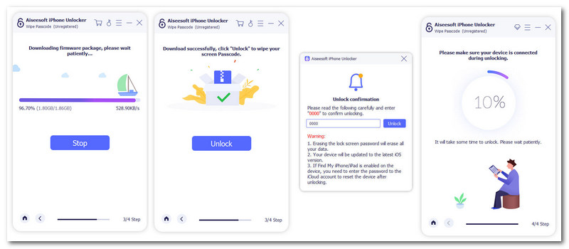 C'est la meilleure méthode pour déverrouiller un iPhone sans mot de passe ni Face ID avec un Outil de déverrouillage iPhone. Cet outil est très fiable et vous offrira une approche efficace. En raison des qualités qu’il apporte, cela est envisageable. Vous ne serez pas désolé si vous utilisez cet outil. Obtenez Aiseesoft iPhone Unlocker dès maintenant pour résoudre votre problème sans aucun problème.