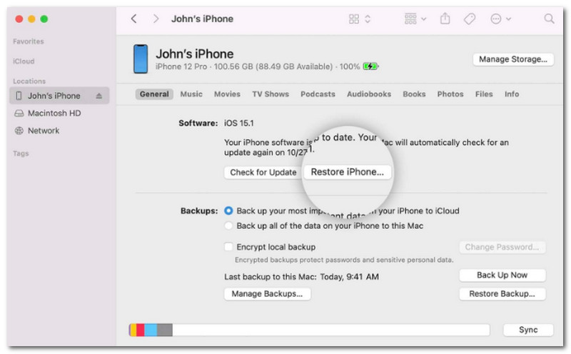 Attends le Sauvegarde automatique processus à terminer. Si iTunes ne sauvegarde pas votre iPhone, vous pouvez choisir votre Icône iPhone et activer lié à la synchronisation paramètres. Changer le cordon USB peut également aider.