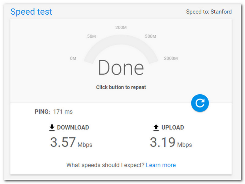 Google Fiber Speed Test has a clean and straightforward interface. The color blue and white is very light in the eyes, making the interface much more uncomplicated. Moreover, you can easily see the Start button to start the speed testing. Also, while speed testing, you will automatically see the results. Upon speed testing, you need to note that the results may not be accurate if you have a slow Internet connection.