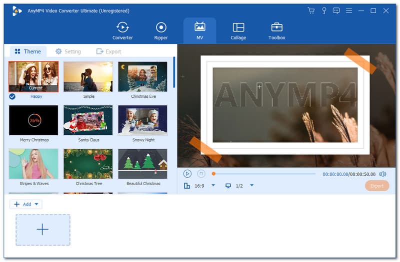 משתמשים מסוימים עשויים למצוא את Camtasia כעורך וידאו לא מתאים עבורם. לפיכך, חלופה נהדרת לעורך וידאו עבורו. לכן אנחנו רוצים להכיר לכם AnyMP4 Video Converter Ultimate. זוהי תוכנת המרה מצוינת שיכולה לתת לך תהליך המרה חלק. עם זאת, הוא מתמקד בהמרה ובעל תכונות ייחודיות לכלי עריכת וידאו. הוא מציע ליצרן קולאז'ים להציב שני סרטונים או יותר על מסך אחד בלבד.