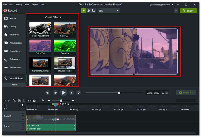 ישנן כמה דרכים לשנות את דירוג הצבע של הסרטון שלנו באמצעות Camtasia. תסתכל למטה כדי להראות לך דרך מסוימת.