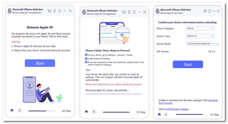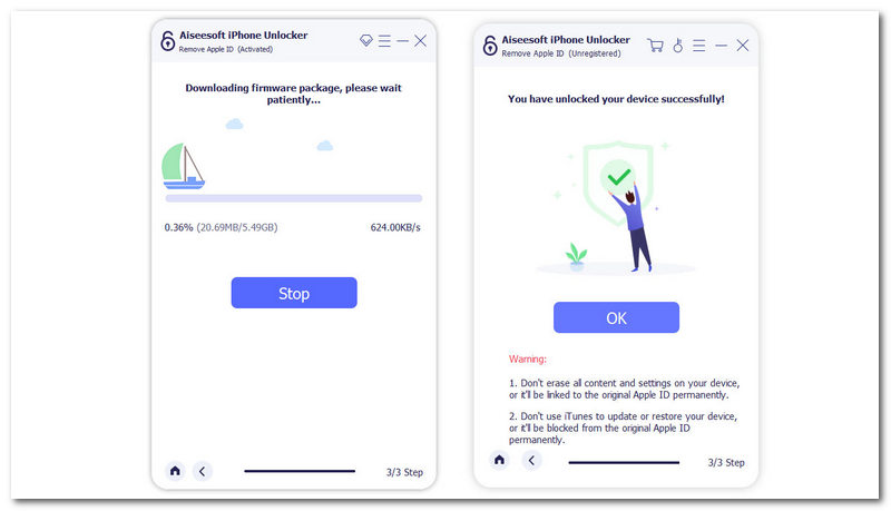 Aiseesoft iPhone अनलॉकर पूरा हो गया, आईडी हटाएं