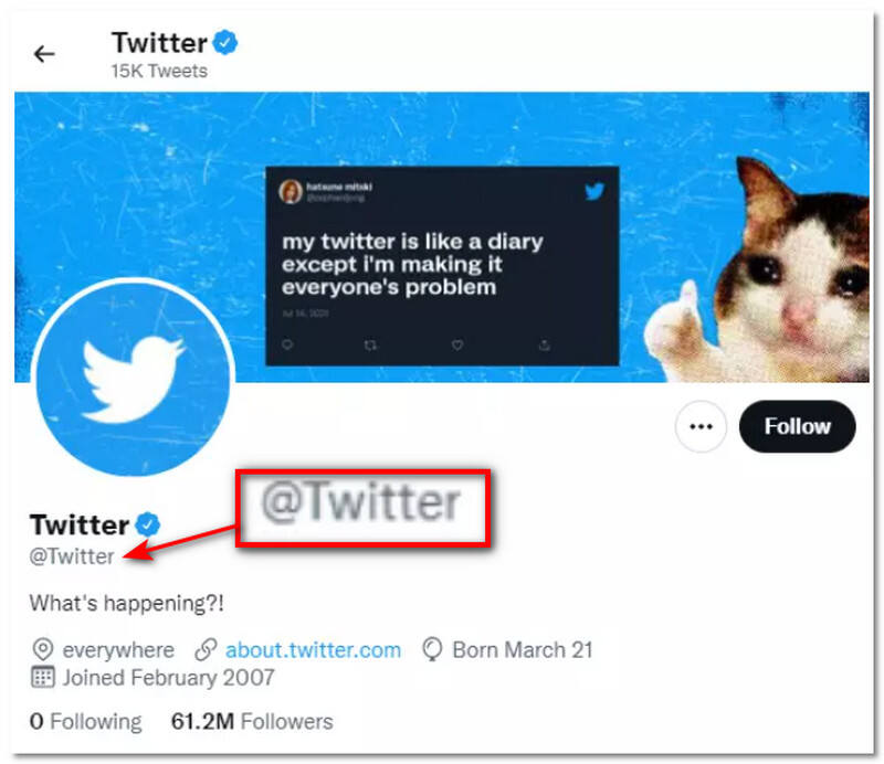 Összefoglalva, a Twitter-felhasználónév vagy -kar megkönnyíti a többi felhasználó számára, hogy azonosítsák és megemlítsék az Ön fiókját tweetjeikben és megjegyzéseikben. De felmerült benned egy kérdés, igaz? Lehetséges megváltoztatni a Twitter fogantyúját? A válasz igen; a következő részben láthatja, hogyan kell csinálni. Csak olvass tovább.