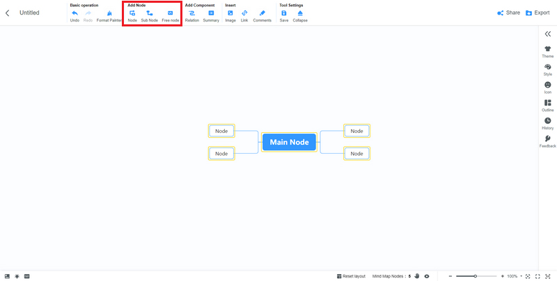 You can create a Main Node and some Sub or Free nodes. After determining a basic framework, you can delete and add to it later.
