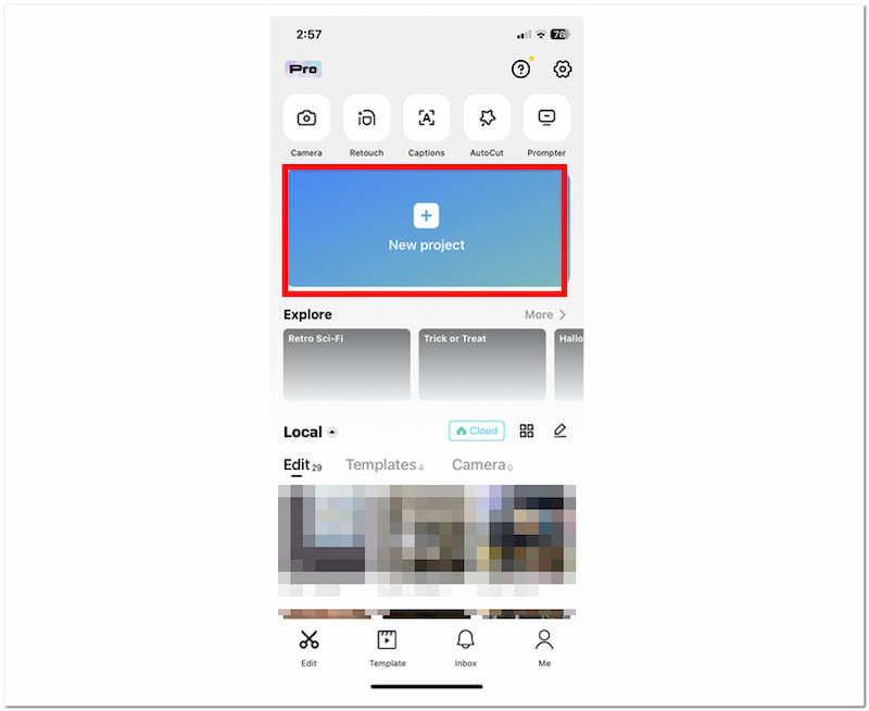 Once you open the app, on the main screen, click New Project, and from your device gallery, select the blurry video you want fixed.