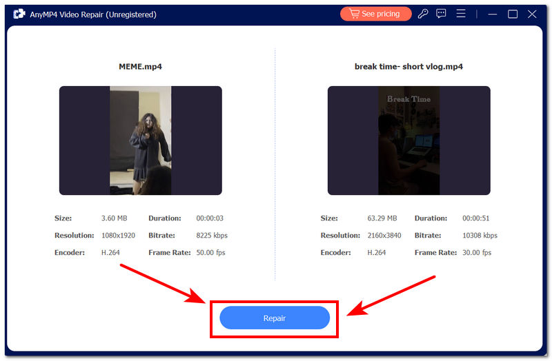 Once all the videos load in the software, click the Repair button to start the repair process.