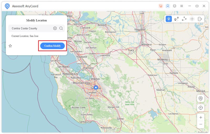 To begin changing your Pokemon GO location using the Aiseesoft AnyCoord, click on Modify Location from the available options on the main interface.