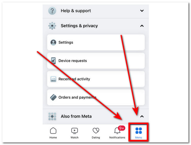 Go to your Menu setting in the lower right part of your Facebook homepage