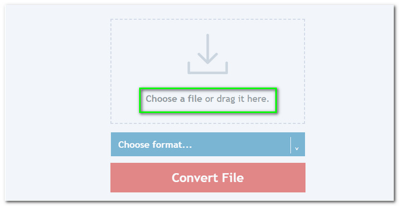 Go to the converter box and click the Choose a file or drag it here from the web page. These features will allow you to add your video to the interface. Select your files on the Windows tab and click Open.
