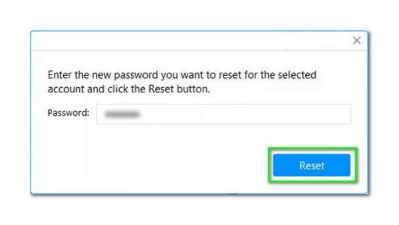 Following that, a rectangular box will appear and lets you enter the new password that you like in order to reset. Once you input your new password successfully, click the Reset button.