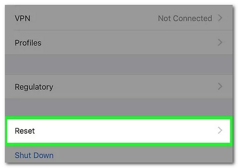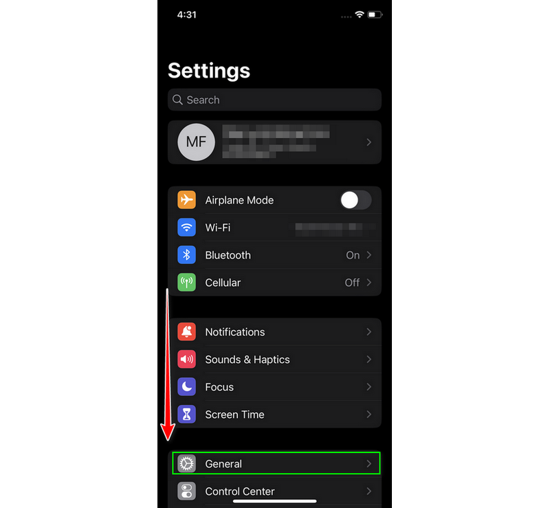 Once you enter the General panel, you need to scroll again to find the Reset button. After that, you will proceed to the next step.