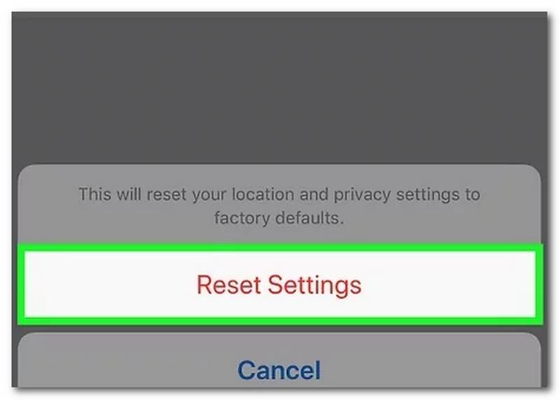After you enter your passcode, you will see the pop-up option below the screen. The options are; Reset Settings and Cancel. Choose the Reset Settings to complete changing your location.