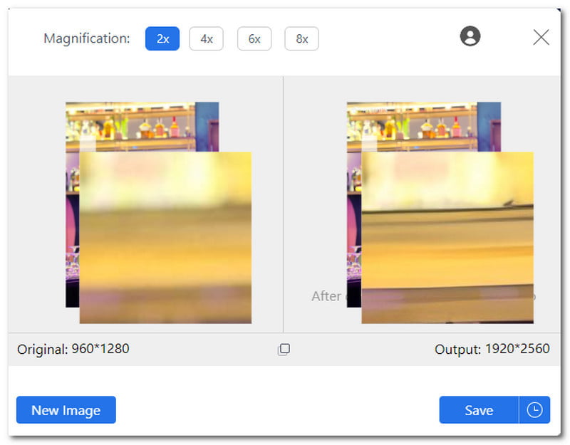 There is no watermark on the output. What's more incredible about it is the ability to enlarge a small picture in good resolution by 2x, 4x, 6x, or even 8x with this free image upscaler and photo enlargement. Small photographs can be enlarged while also getting better and sharper. Let's see how we can use it for cropping an image with ease.