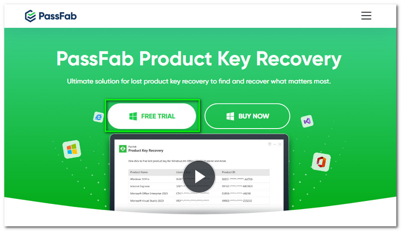 On the official website of PassFab Product Key Recovery, click the Free Trial button. Wait until it is downloaded, and you can start installing it on your computer.