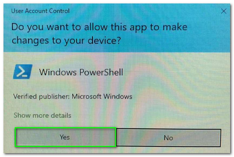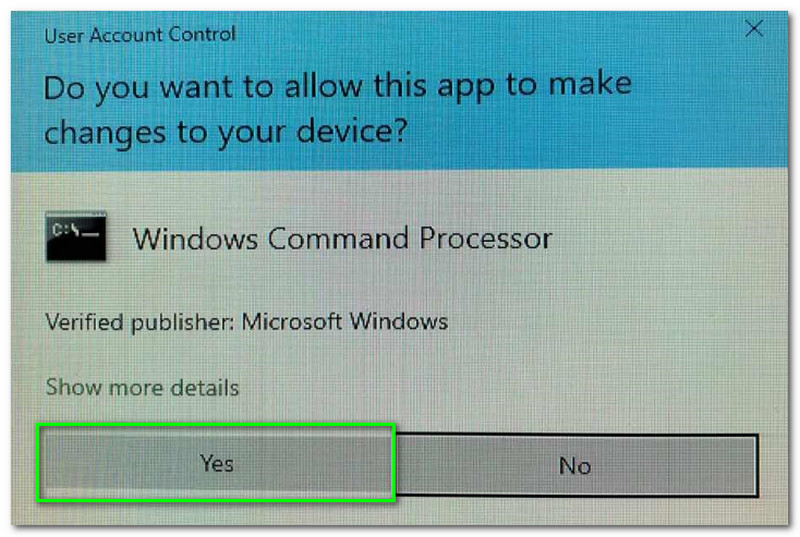 After selecting the Run as Administrator, a dialog box will pop up, asking you if you want to allow the app to make changes to your device. Then, click the Yes button.