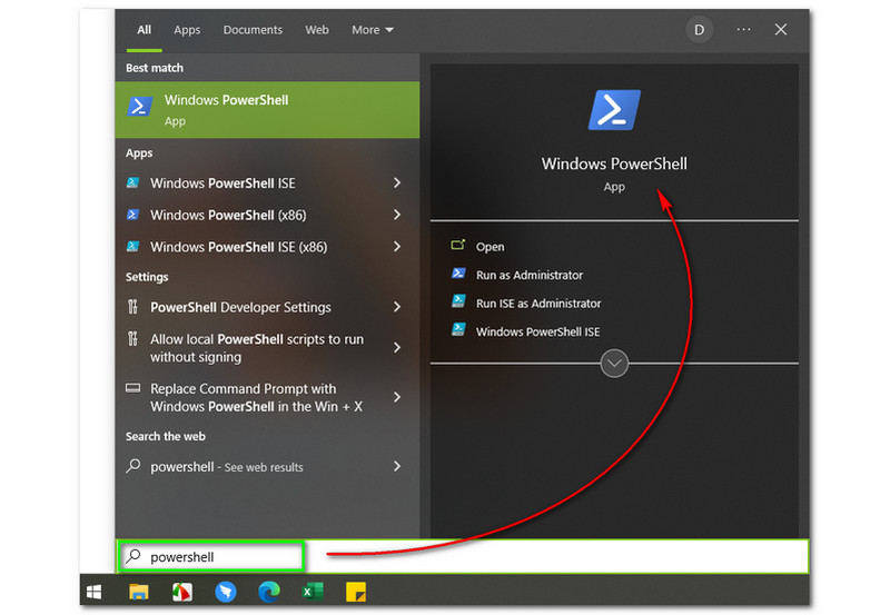 Go to your Windows Start, and you need to type PowerShell on the text box on the bottom part, and the software will appear on the right side corner of the Windows Start.