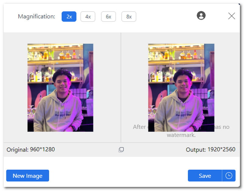 For the improved image to be downloaded, click the Save button and see the clearer version of your image .