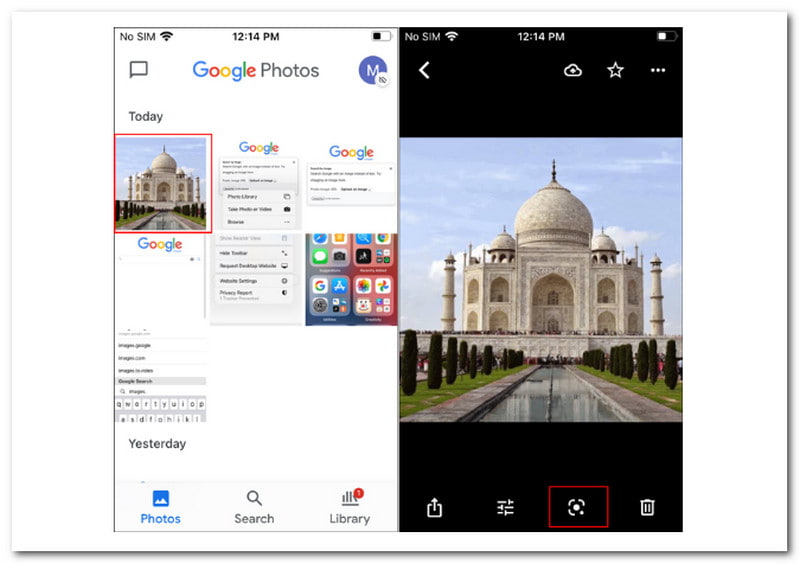 Open Google Photos on your iOS and select the Image you want to reverse search. From the image options at the bottom, select the Google Lens symbol.