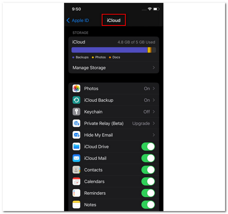 2. From your iCloud, find the Keychain option from the list and kindly enable it.