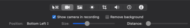 Camera: Enable or disable recording from your webcam. You can use the Mac’s Facetime or the camera of your iPhone or iPad.