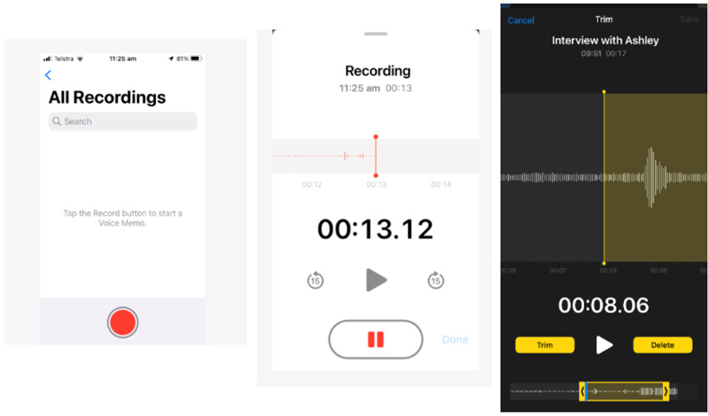 From here, you can use the trim function to cut out parts of the audio or even delete the entire recording if you’re unhappy.