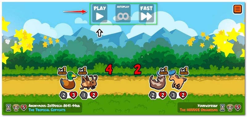Now, the battle will begin. You have an option during the battle; you can click Play, Auto Play, and Fast. You will see that option on the upper part of the game.