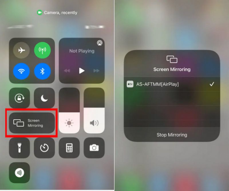 iPhone'unuzda Kontrol Merkezi'ni açmak için ekranın sağ üst köşesinden aşağı doğru kaydırın. AirPlay veya Screen Mirroring sembolünü basılı tutun. Tabanında bir üçgen bulunan bir dikdörtgendir. iPhone'unuz uyumlu gadget'ları arayacaktır. Listede göründüğü anda yansıtmaya başlamak için Firestick'inize basın.
