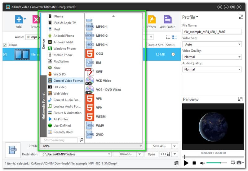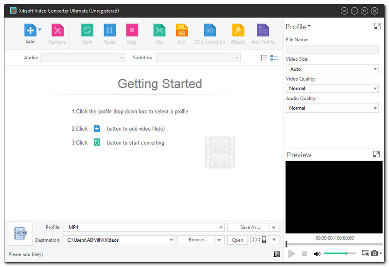 Xilisoft Video Converter Ultimate has a graphical interface that is great to look at. On the right panel of the software interface, you can see the Profile to see the name, size, quality upon converting your video and audio. Below, you can also see the small box, where you can preview your file and take control of the toolbox below the preview box.