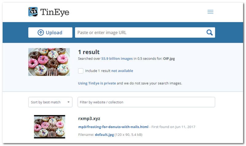 TinEye 反向图像搜索是最好的反向图像搜索之一,该工具旨在使您的图像可搜索。根据我们对该工具的研究,它也是最快、最准确的图像识别 API 之一。它可以搜索您上传的照片并提供结果,包括有多少人搜索了它。