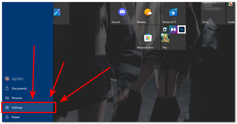 通过单击屏幕左下角的 Windows 开始菜单打开桌面设置。
