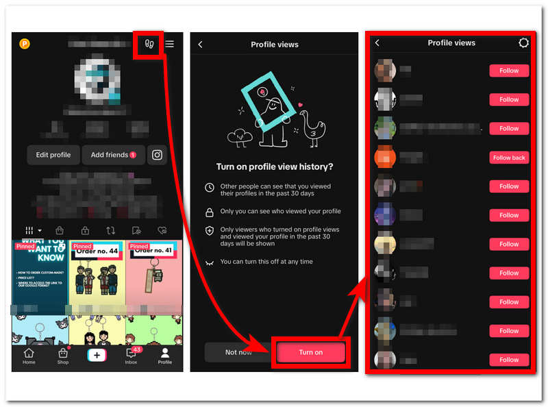 輕敲 打開 啟用這些功能並開始查看曾造訪您帳戶的使用者。