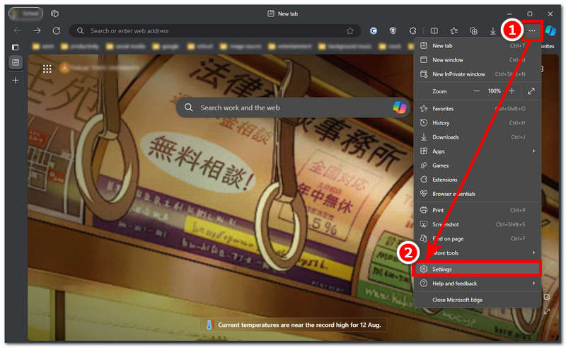 要存取瀏覽器的設置,請找到省略號工具(通常位於瀏覽器介面的右上角)並按一下它。