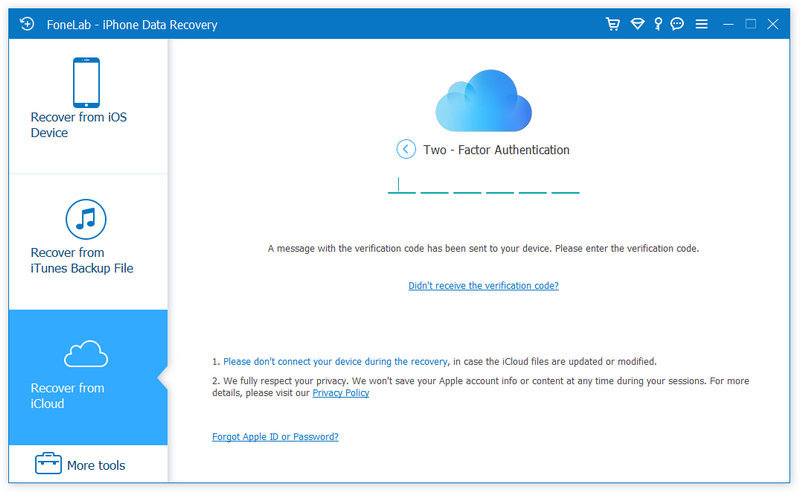 請注意,您必須按 相信 iPhone 上的按鈕(如果有) 啟用雙重認證。然後,Apple 會將驗證碼郵寄到您的 iPhone。在本軟體中輸入驗證碼。