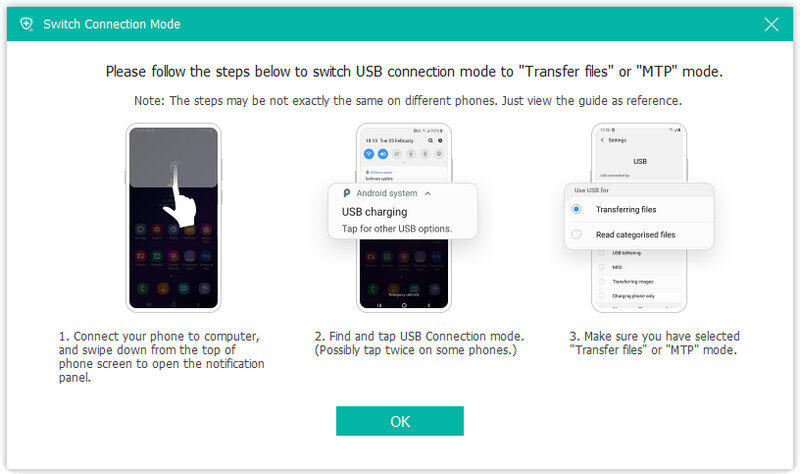 情況3。 否則,請點擊查看切換教程,以了解將 USB 連接模式切換到的完整步驟 傳輸檔案或MTP 模式。